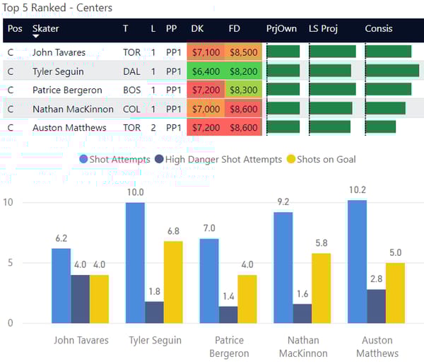 If you take anything away from this, keep in mind that hockey is a high-variance sport. The top ranked player in each category could be a great play or be a dud tonight. Going all in on any player probably isn't a great move.