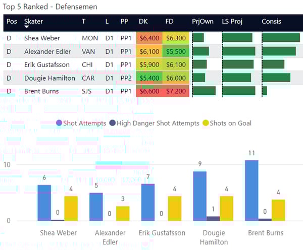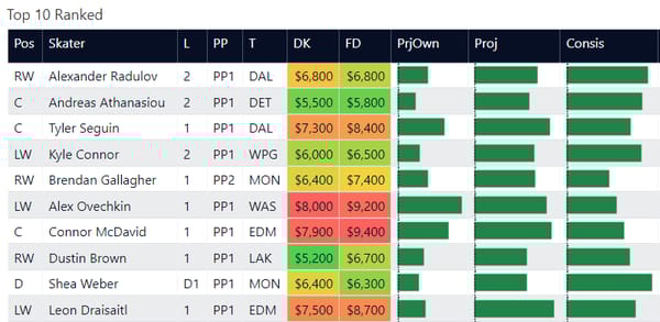 Here are my top-ranked skaters overall on the slate. This is based on recent performance and matchup.