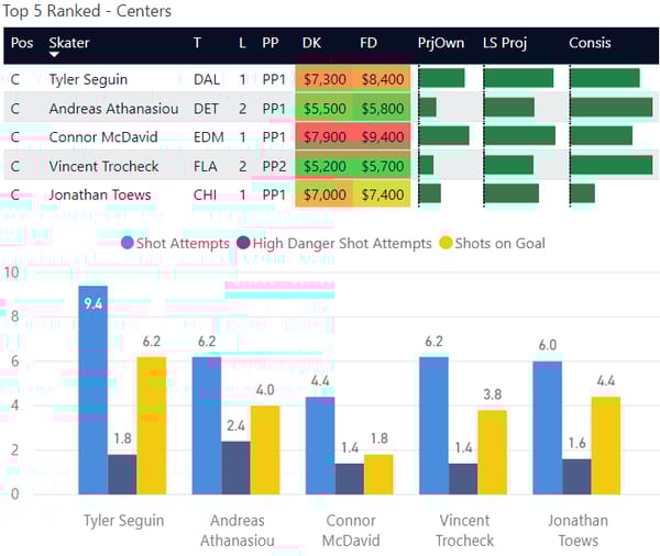 If you take anything away from this, keep in mind that hockey is a high-variance sport. The top ranked player in each category could be a great play or be a dud tonight. Going all in on any player probably isn't a great move.