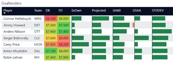 Mostly, I'm trying to give a little more transparency into who I like for the night and who is worth considering. I don't believe in locks or must plays. So with goalies, I usually hover around the top spots and split exposure. In baseball, I'll often swap pitchers if I get a lineup with all the hitters I like. Same applies with goalies. If you build a lineup and like your skaters, but aren't certain on goalies, don't be afraid to create a second lineup with your second favorite goalie.
