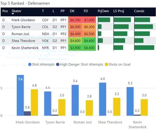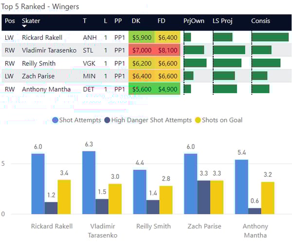 Here are my top-ranked skaters overall on the slate. This is based on recent performance and matchup.