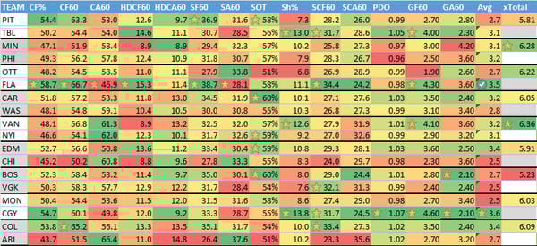 Here are the team numbers for tonight's slate: