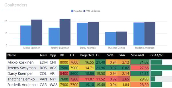 If you take anything away from this, keep in mind that hockey is a high-variance sport. The top-ranked player in each category could be a great play or be a dud tonight. Going all-in on any player probably isn't a great move.