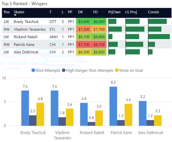 Next, let's look at wingers - and like I mentioned, NHL is all about correlation. When building your lineups, always think of who you can pair together. If there's a center that you love, it's probably a good idea to find a winger or defenseman to pair him with.