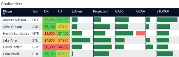 Mostly, I'm trying to give a little more transparency into who I like for the night and who is worth considering. I don't believe in locks or must plays. So with goalies, I usually hover around the top spots and split exposure. In baseball, I'll often swap pitchers if I get a lineup with all the hitters I like. Same applies with goalies. If you build a lineup and like your skaters, but aren't certain on goalies, don't be afraid to create a second lineup with your second favorite goalie.