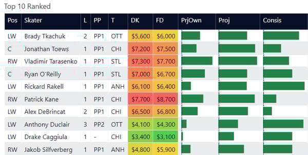 Here are my top-ranked skaters overall on the slate. This is based on recent performance and matchup.