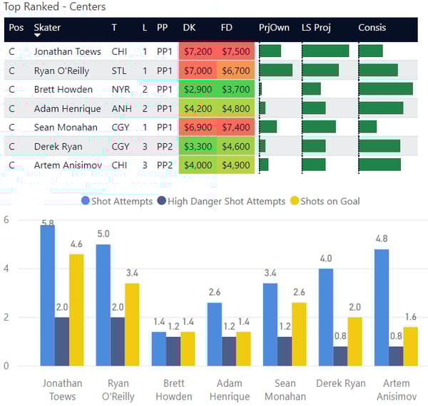 If you take anything away from this, keep in mind that hockey is a high-variance sport. The top ranked player in each category could be a great play or be a dud tonight. Going all in on any player probably isn't a great move.