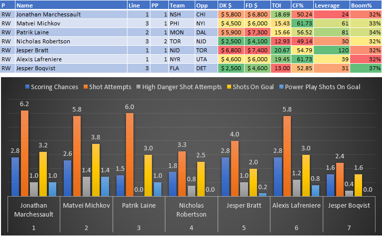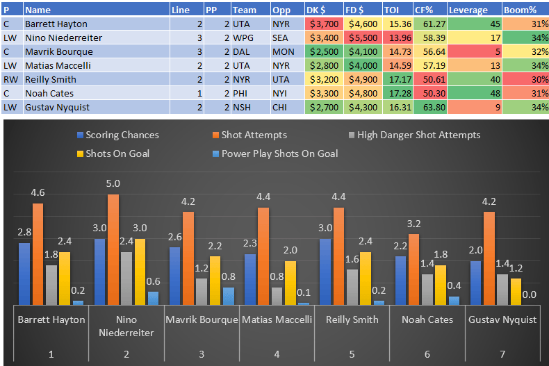 If you take anything away from this, remember that hockey is a high-variance sport. The top-ranked player in each category could be a great play or be a dud tonight. Going all-in on any player probably isn't a great move.