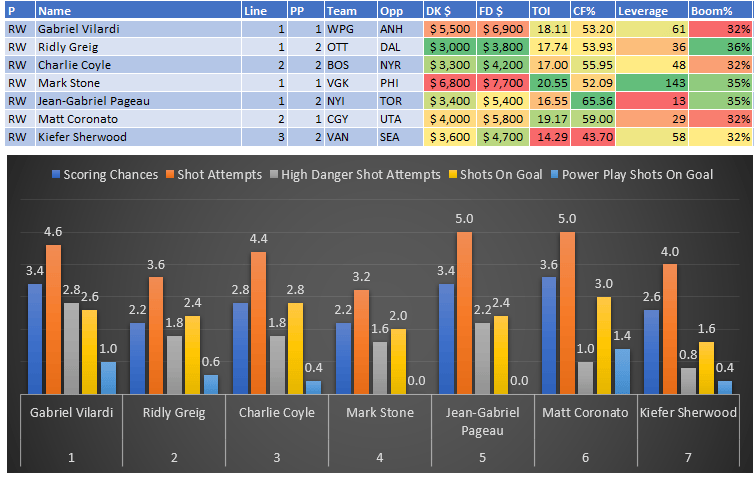 If you take anything away from this, remember that hockey is a high-variance sport. The top-ranked player in each category could be a great play or be a dud tonight. Going all-in on any player probably isn't a great move.