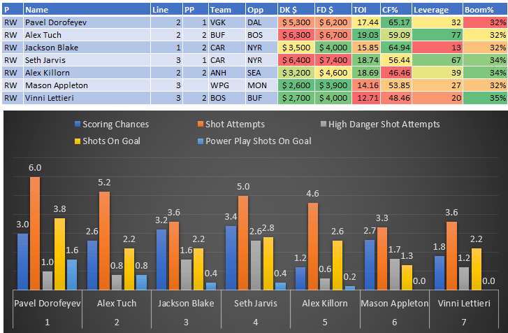 If you take anything away from this, remember that hockey is a high-variance sport. The top-ranked player in each category could be a great play or be a dud tonight. Going all-in on any player probably isn't a great move.