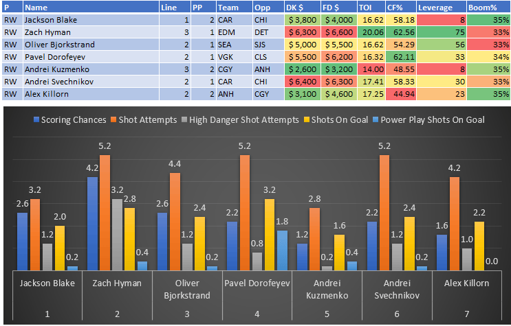 If you take anything away from this, remember that hockey is a high-variance sport. The top-ranked player in each category could be a great play or be a dud tonight. Going all-in on any player probably isn't a great move.