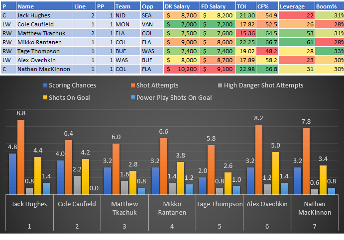 If you take anything away from this, remember that hockey is a high-variance sport. The top-ranked player in each category could be a great play or be a dud tonight. Going all-in on any player probably isn't a great move.
