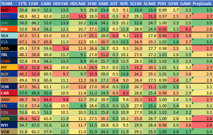 NHL Cheatsheet for 1/9