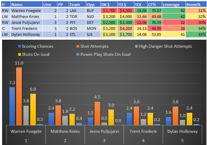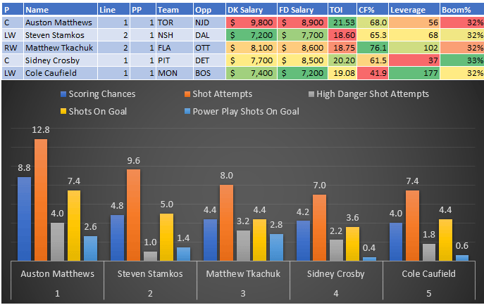 If you take anything away from this, remember that hockey is a high-variance sport. The top-ranked player in each category could be a great play or be a dud tonight. Going all-in on any player probably isn't a great move.