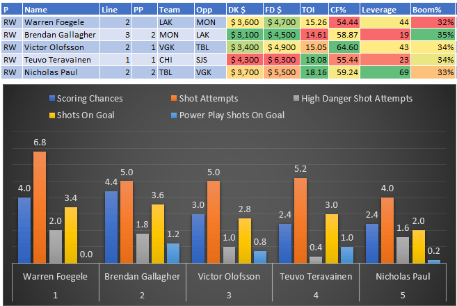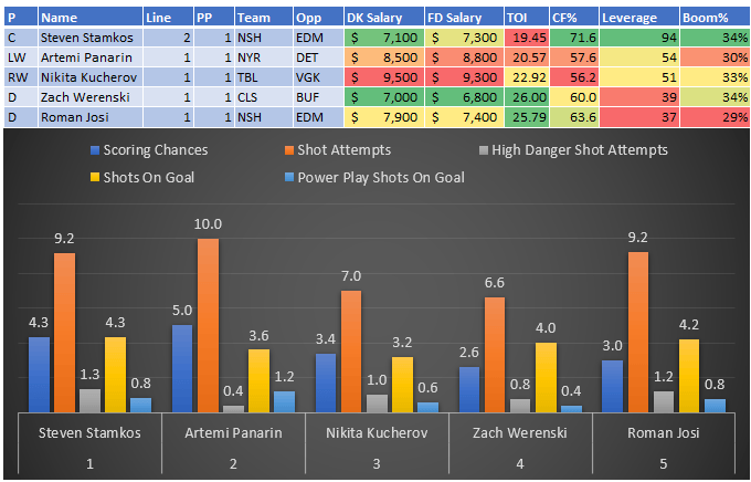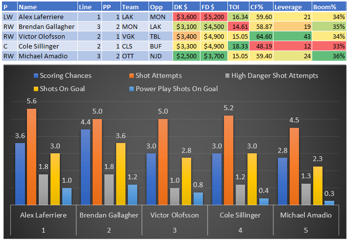 If you take anything away from this, remember that hockey is a high-variance sport. The top-ranked player in each category could be a great play or be a dud tonight. Going all-in on any player probably isn't a great move.