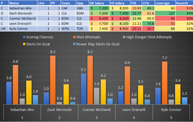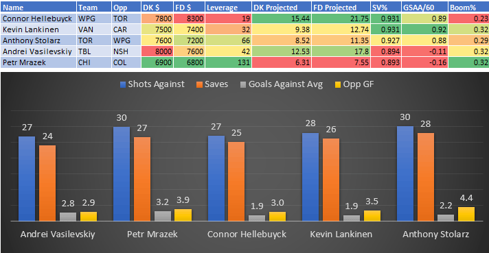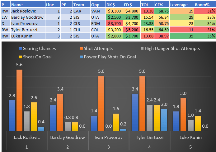 If you take anything away from this, remember that hockey is a high-variance sport. The top-ranked player in each category could be a great play or be a dud tonight. Going all-in on any player probably isn't a great move.