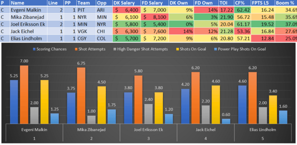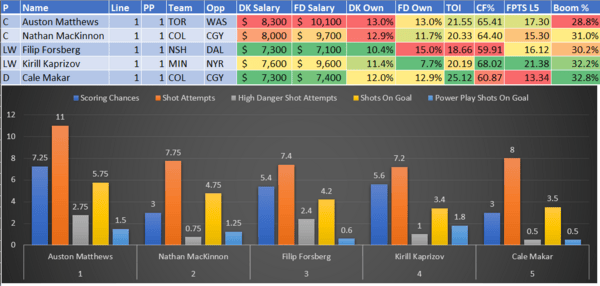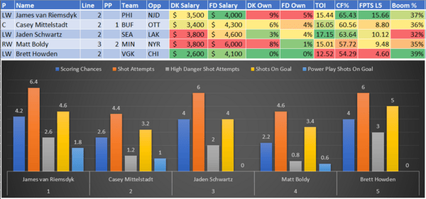 If you take anything away from this, remember that hockey is a high-variance sport. The top-ranked player in each category could be a great play or be a dud tonight. Going all-in on any player probably isn't a great move.