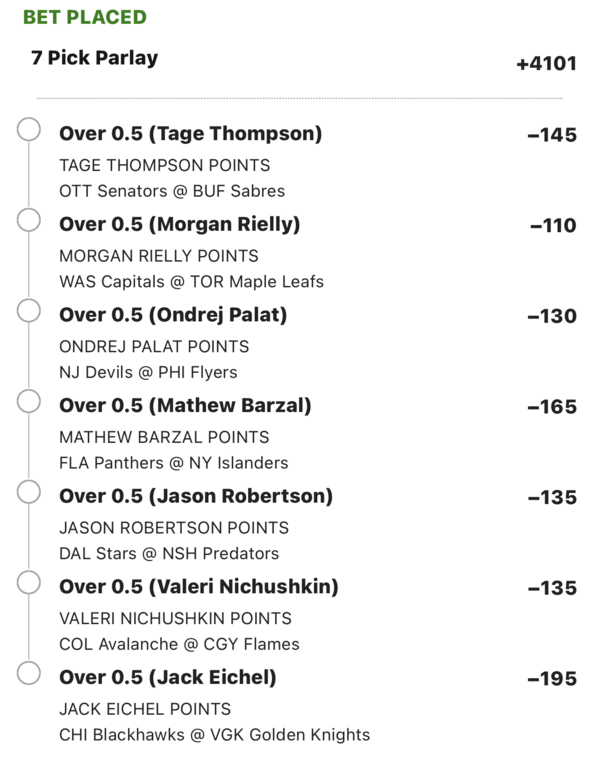 7-leg point parlay for tonight.