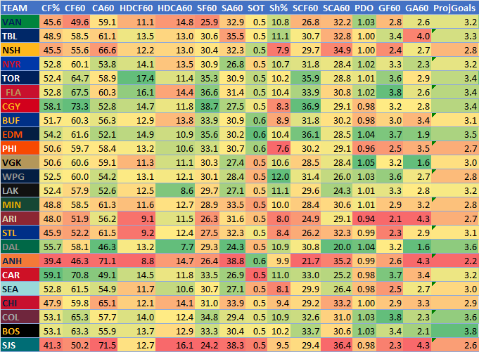 Here are the team numbers for tonight's slate (looking at the last 10 games):