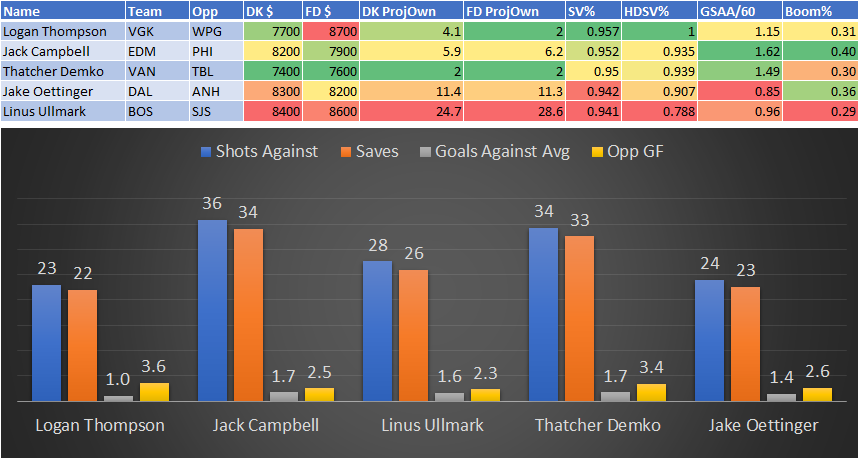 If you take anything away from this, remember that hockey is a high-variance sport. The top-ranked player in each category could be a great play or be a dud tonight. Going all-in on any player probably isn't a great move.