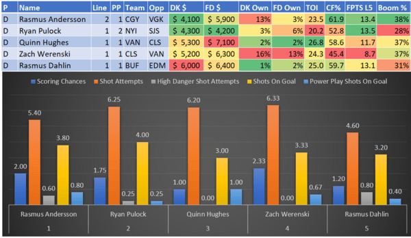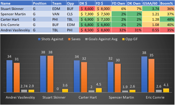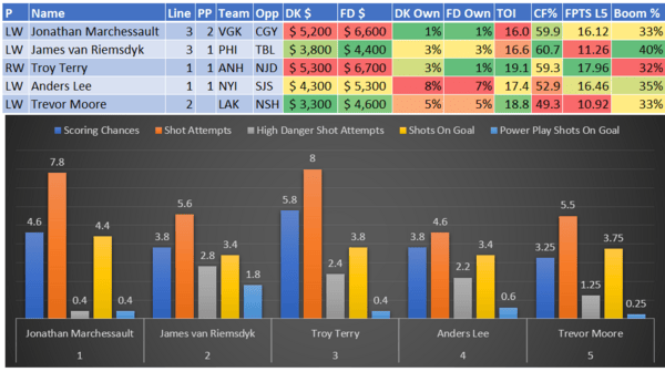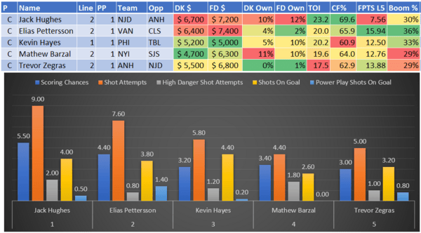 If you take anything away from this, remember that hockey is a high-variance sport. The top-ranked player in each category could be a great play or be a dud tonight. Going all-in on any player probably isn't a great move.
