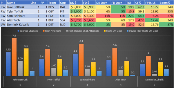 If you take anything away from this, remember that hockey is a high-variance sport. The top-ranked player in each category could be a great play or be a dud tonight. Going all-in on any player probably isn't a great move.