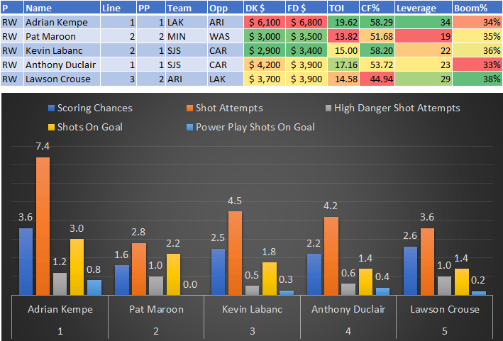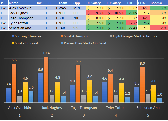 If you take anything away from this, remember that hockey is a high-variance sport. The top-ranked player in each category could be a great play or be a dud tonight. Going all-in on any player probably isn't a great move.