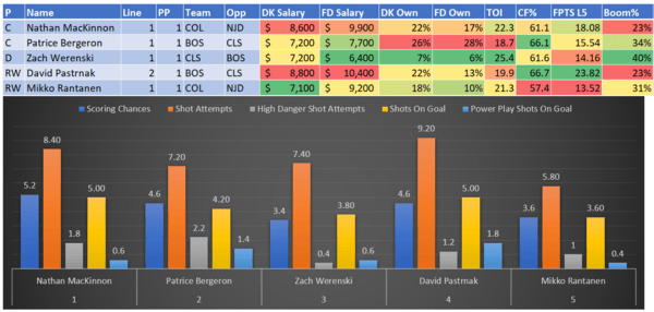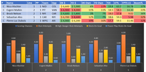 If you take anything away from this, remember that hockey is a high-variance sport. The top-ranked player in each category could be a great play or be a dud tonight. Going all-in on any player probably isn't a great move.