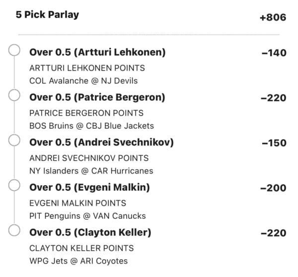 5 games tonight means a 5-leg parlay. Let me know if you're tailing...