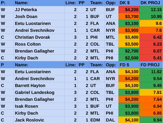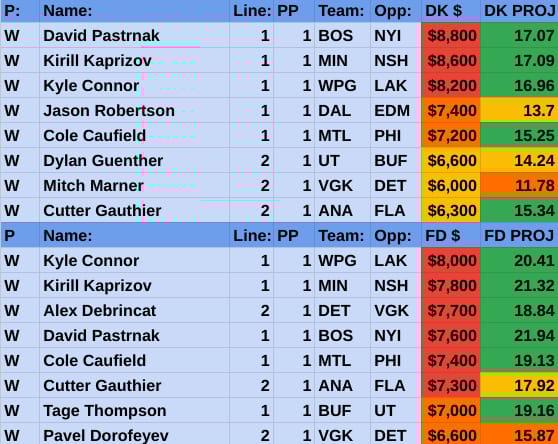 If you take anything away from this, remember that hockey is a high-variance sport. The top-ranked player in each category could be a great play or be a dud tonight. Going all-in on any player probably isn't a great move.