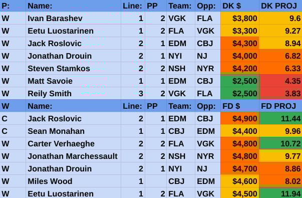 Favorite high priced DK / FD line: FLA 2 / NYI 1