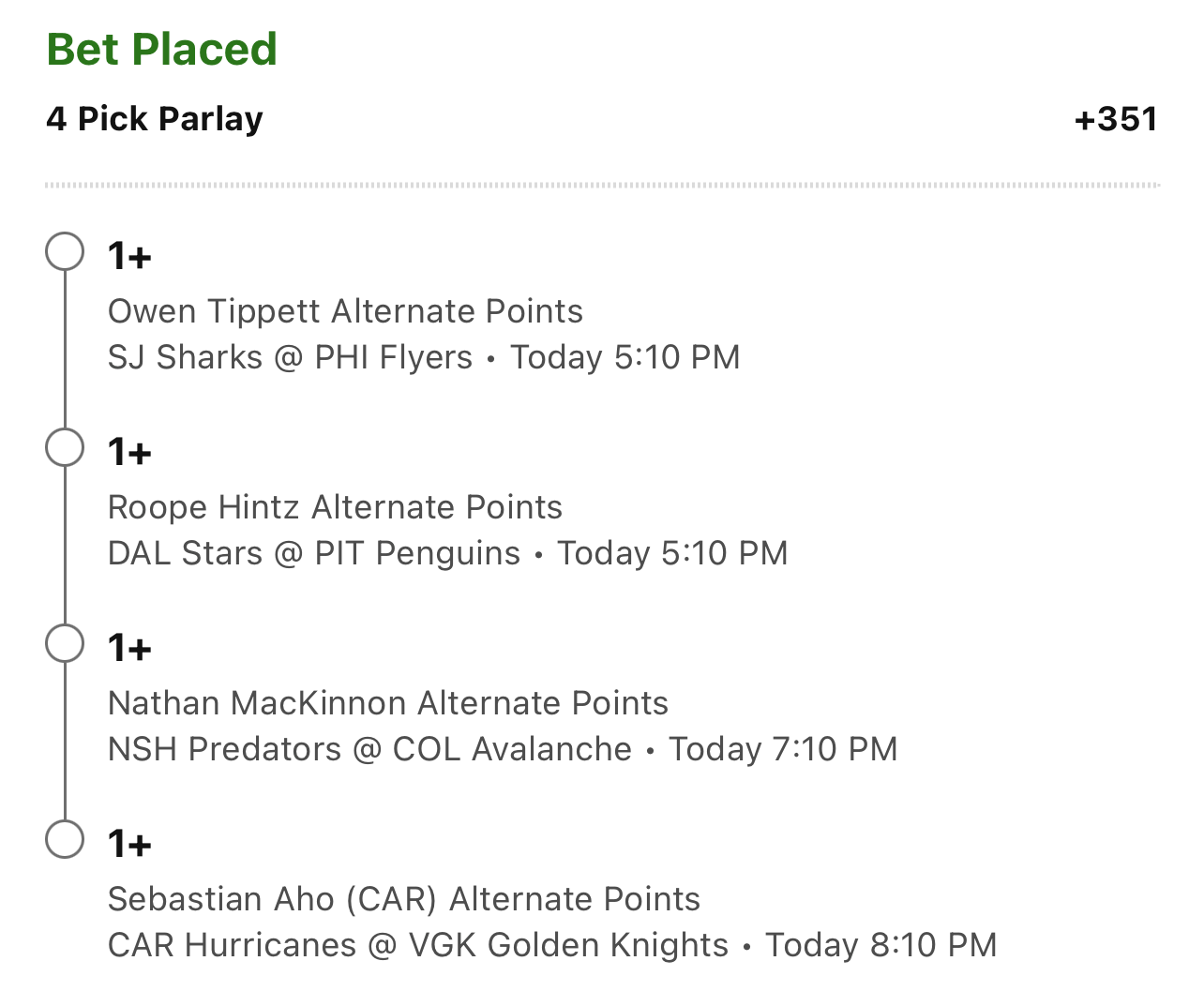 - NHL Hat Trick 11/11🥅 5-Game Monday Slate