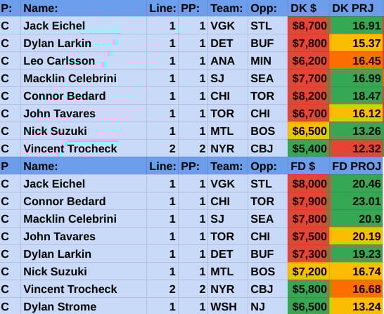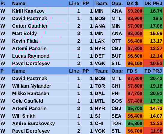 If you take anything away from this, remember that hockey is a high-variance sport. The top-ranked player in each category could be a great play or be a dud tonight. Going all-in on any player probably isn't a great move.