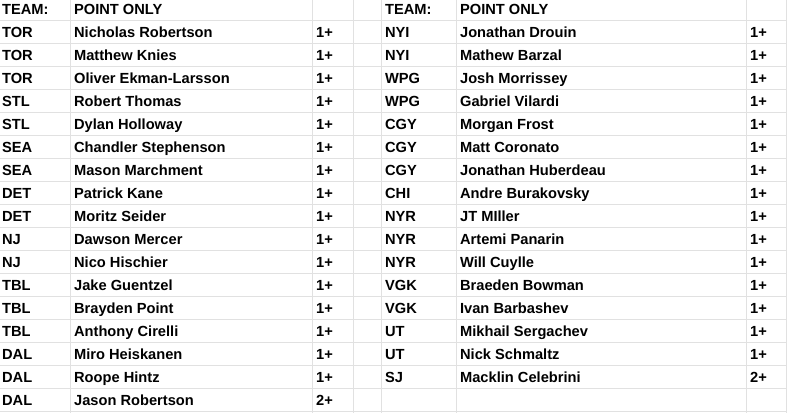 Favorite middle of the pack line: DAL 2 / NJ 1 / VGK 1
