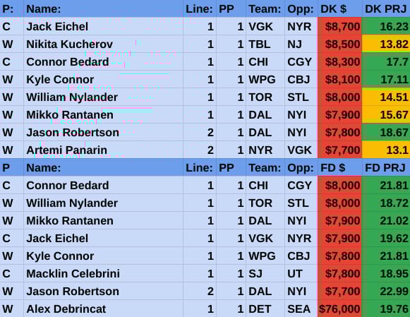 If you take anything away from this, remember that hockey is a high-variance sport. The top-ranked player in each category could be a great play or be a dud tonight. Going all-in on any player probably isn't a great move.
