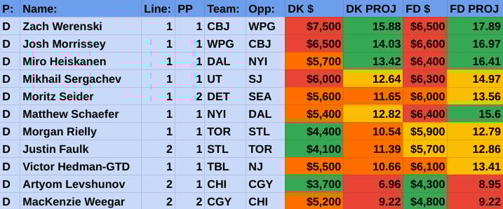 My favorite: Josh Morrissey - WPG vs CBJ ($6300 - FD: $6500)