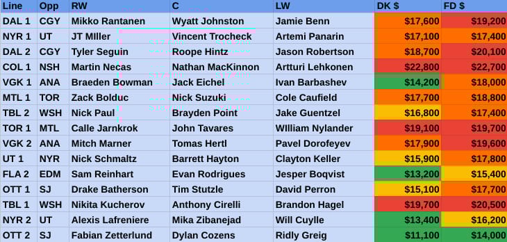 Favorite middle of the pack line: NYR 1 / DAL 1 / MTL 1 / DAL 2 / UT 1