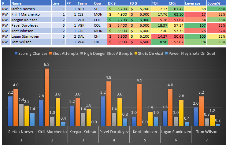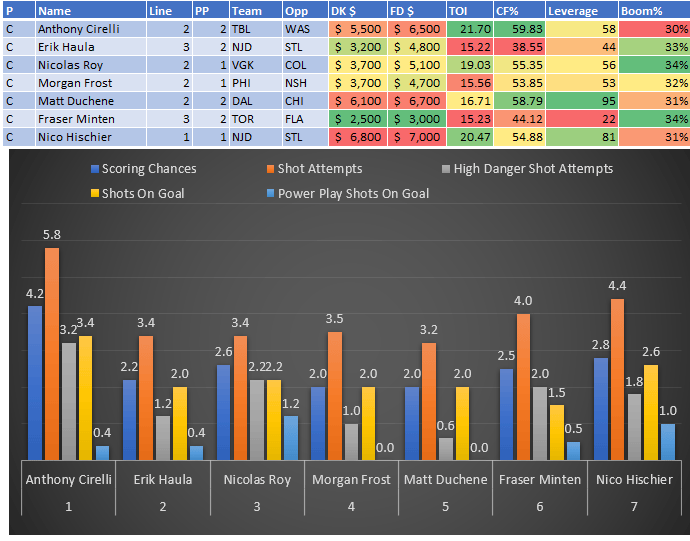 If you take anything away from this, remember that hockey is a high-variance sport. The top-ranked player in each category could be a great play or be a dud tonight. Going all-in on any player probably isn't a great move.