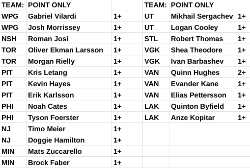 Favorite middle of the pack line: VGK 1 / VAN 1 / PIT 1 / MIN 2