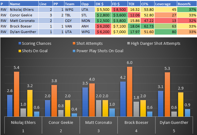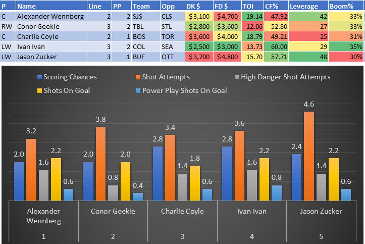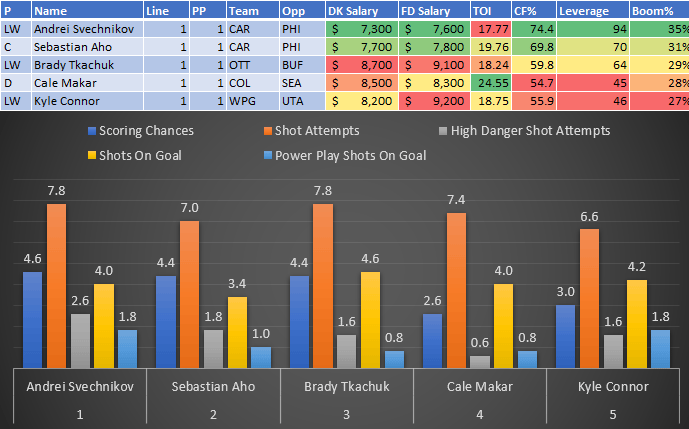 If you take anything away from this, remember that hockey is a high-variance sport. The top-ranked player in each category could be a great play or be a dud tonight. Going all-in on any player probably isn't a great move.