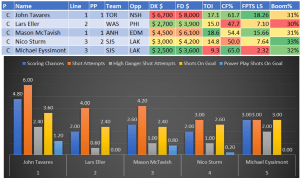 If you take anything away from this, remember that hockey is a high-variance sport. The top-ranked player in each category could be a great play or be a dud tonight. Going all-in on any player probably isn't a great move.