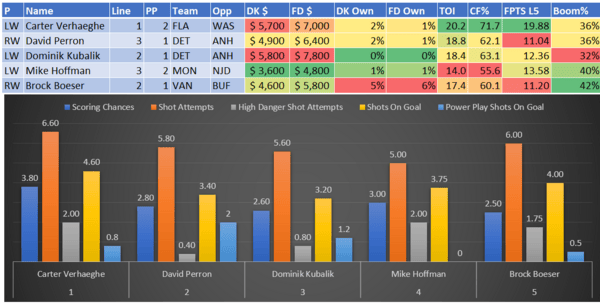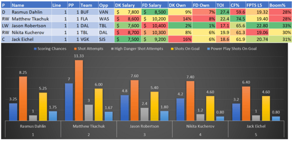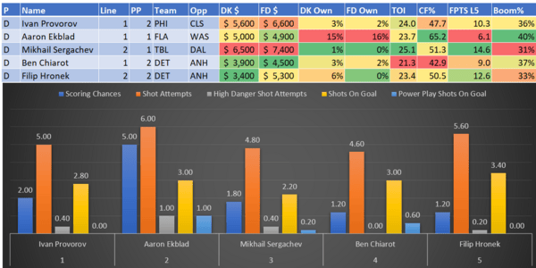 If you take anything away from this, remember that hockey is a high-variance sport. The top-ranked player in each category could be a great play or be a dud tonight. Going all-in on any player probably isn't a great move.