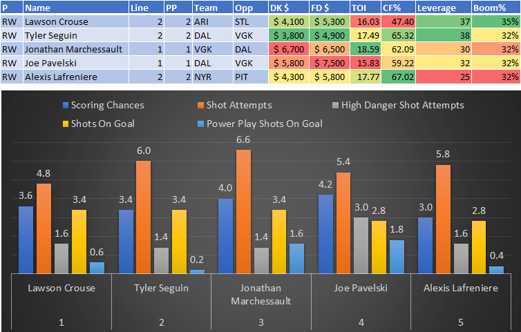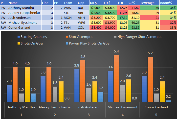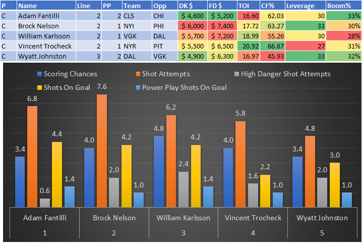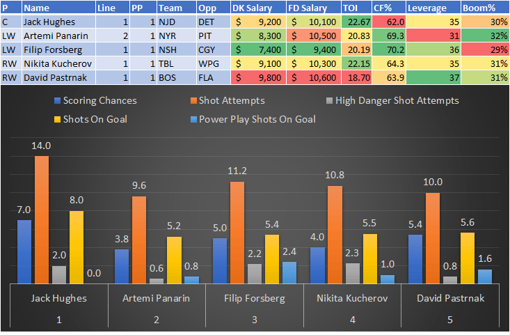 If you take anything away from this, remember that hockey is a high-variance sport. The top-ranked player in each category could be a great play or be a dud tonight. Going all-in on any player probably isn't a great move.
