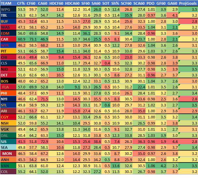 Here are the team numbers for tonight's slate (looking at the last 10 games):