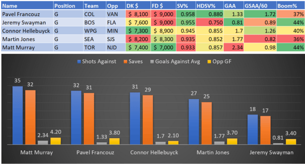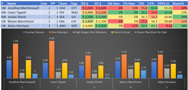 If you take anything away from this, remember that hockey is a high-variance sport. The top-ranked player in each category could be a great play or be a dud tonight. Going all-in on any player probably isn't a great move.