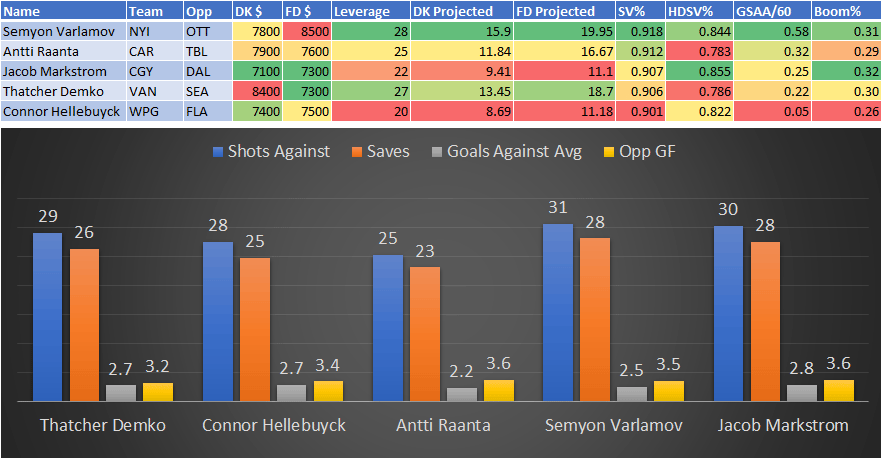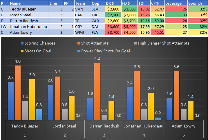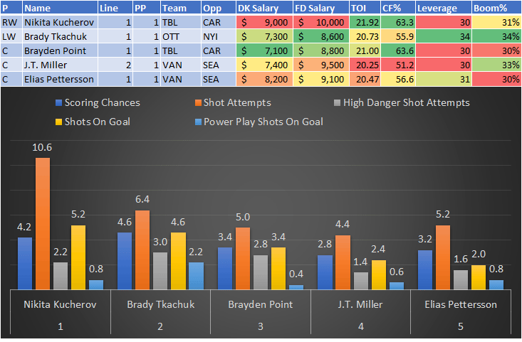 If you take anything away from this, remember that hockey is a high-variance sport. The top-ranked player in each category could be a great play or be a dud tonight. Going all-in on any player probably isn't a great move.