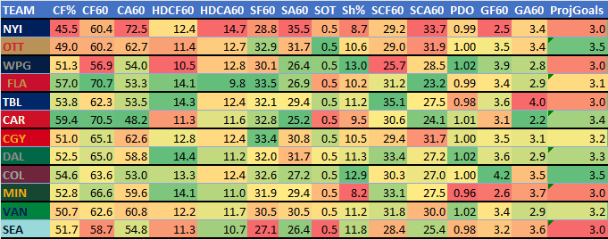 Here are the team numbers for tonight's slate (looking at the last 10 games):
