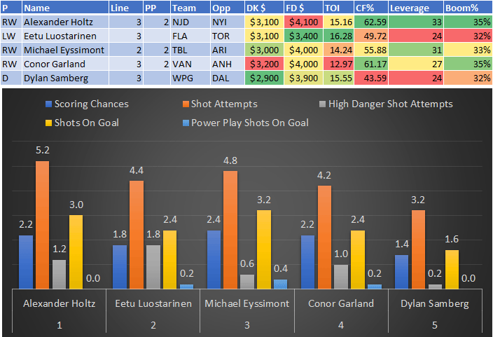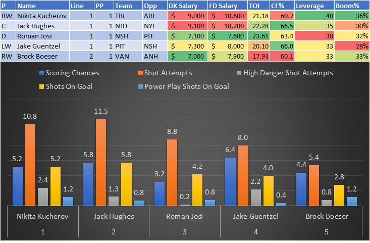 If you take anything away from this, remember that hockey is a high-variance sport. The top-ranked player in each category could be a great play or be a dud tonight. Going all-in on any player probably isn't a great move.