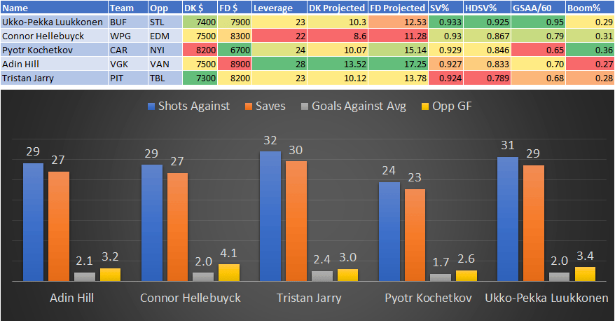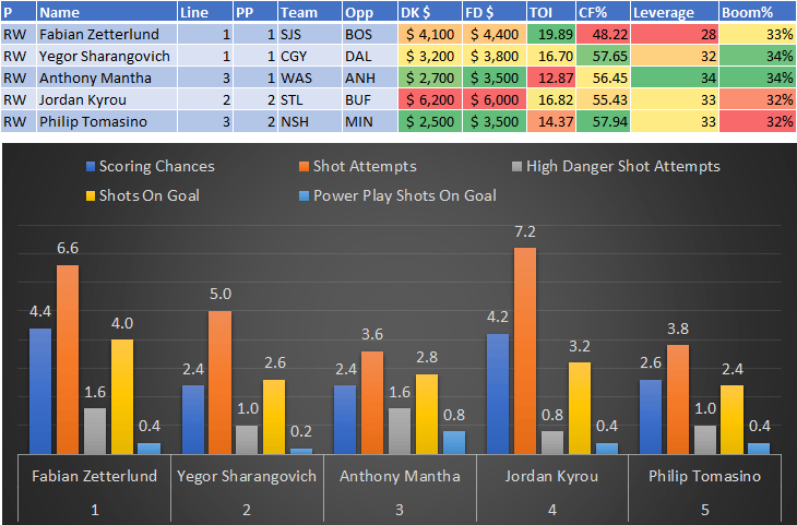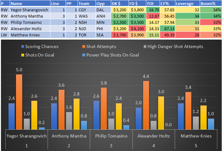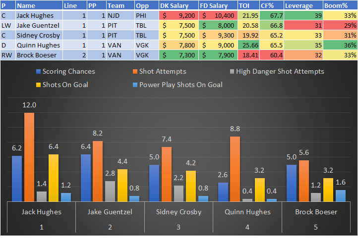 If you take anything away from this, remember that hockey is a high-variance sport. The top-ranked player in each category could be a great play or be a dud tonight. Going all-in on any player probably isn't a great move.