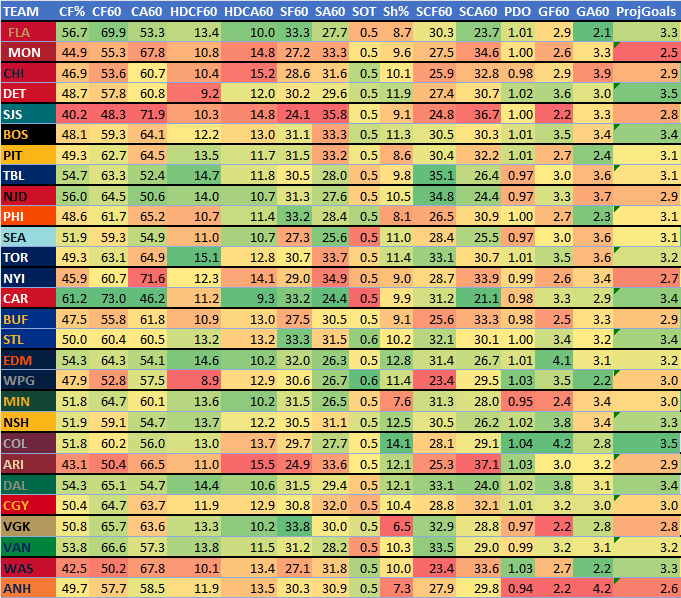 Here are the team numbers for tonight's slate (looking at the last 10 games):